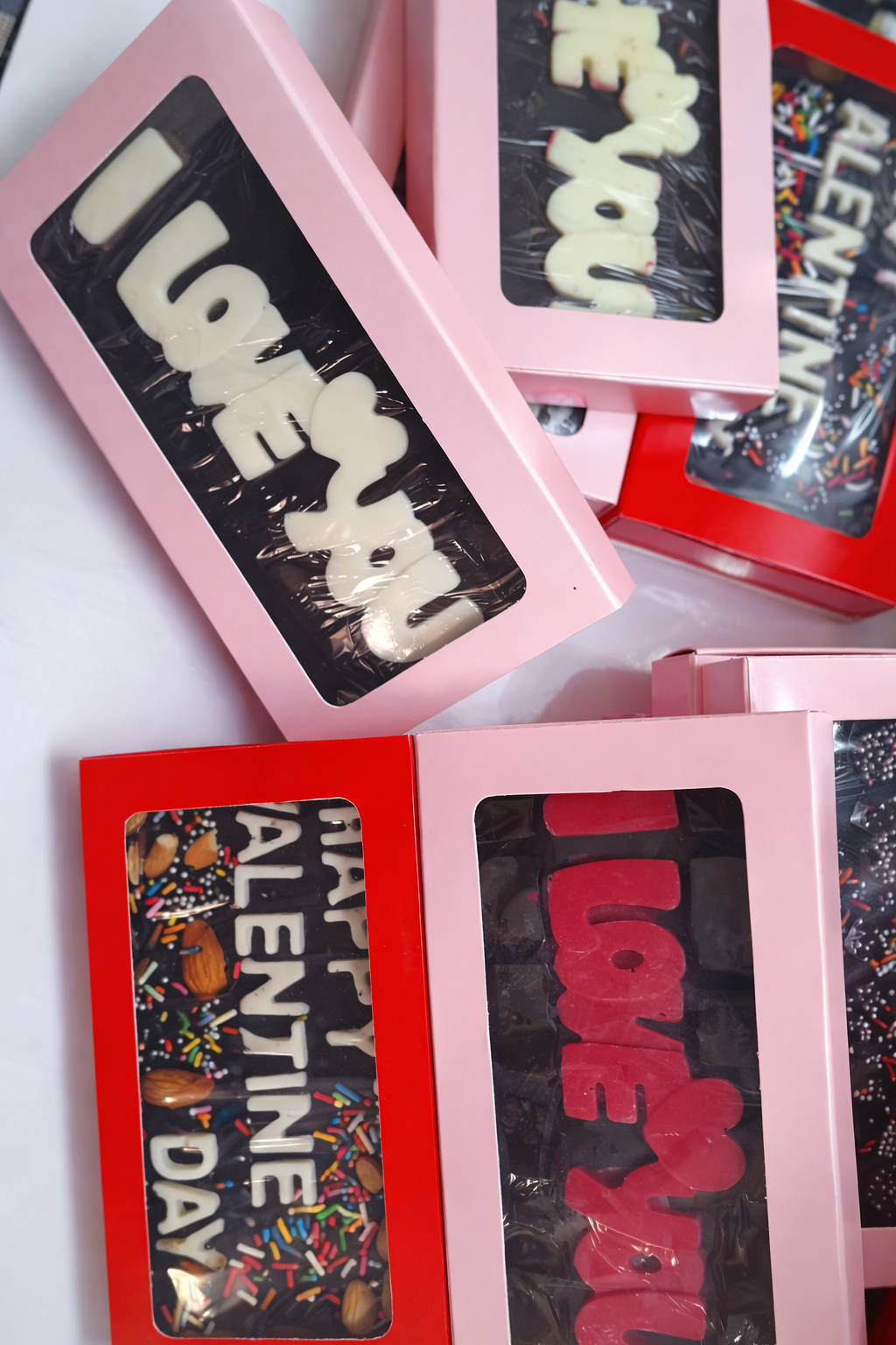 Transparent window with message chocolates